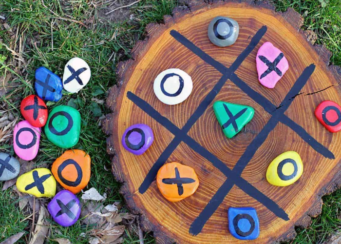 Make your own tic tac toe game with painted rock. For ages 8-14